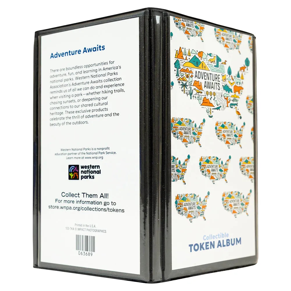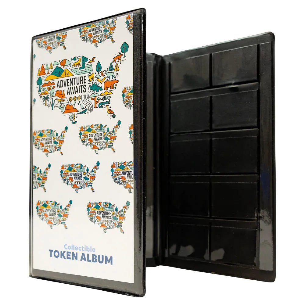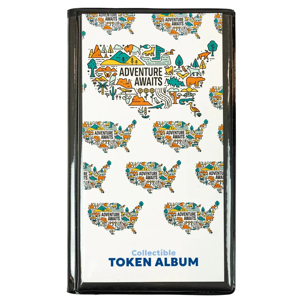 Keep your national park tokens safe and organized with our Adventure Awaits Collectible Token Album. Each album holds up to 30 tokens in clear plastic sleeves that make it easy to view both sides.