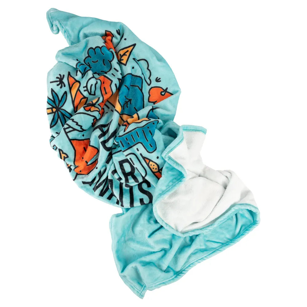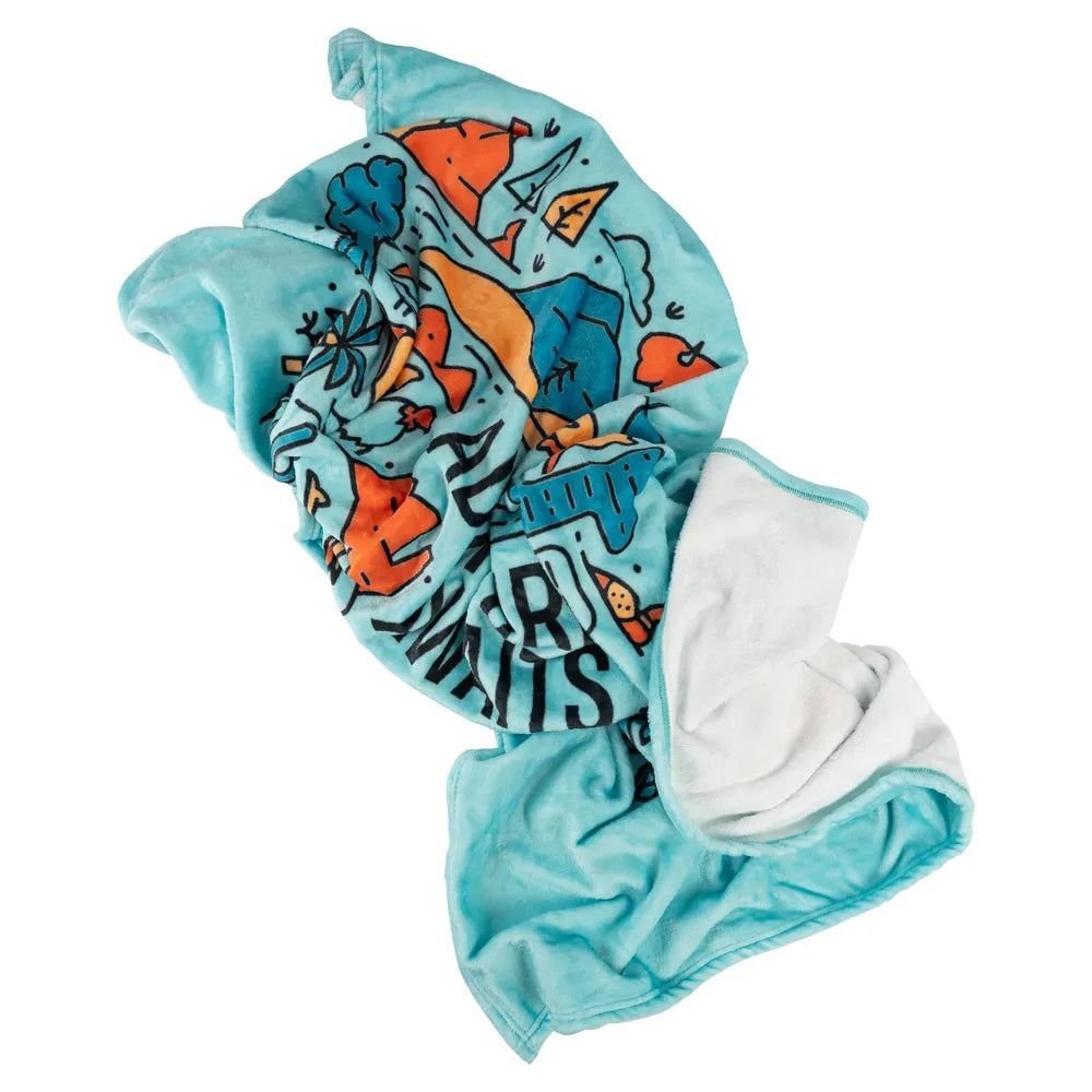Stay cozy and stylish with the Adventure Awaits national park fleece blanket, exclusive to WNP. The design features a colorful map of the U.S., showcasing the wildlife and scenery of iconic national parks. Findshorebirds of the Everglades to the rock formations of Olympic National Park.