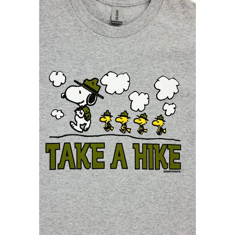 Hit the trail with Snoopy and Woodstock’s family in this fun Peanuts t-shirt! Featuring the playful “Take a Hike” message, this cotton tee is perfect for outdoor enthusiasts and fans of Snoopy and the whole Peanuts gang. Comfortable and stylish, it’s ideal for exploring nature or relaxing with friends. Show off your adventurous spirit with this timeless design!