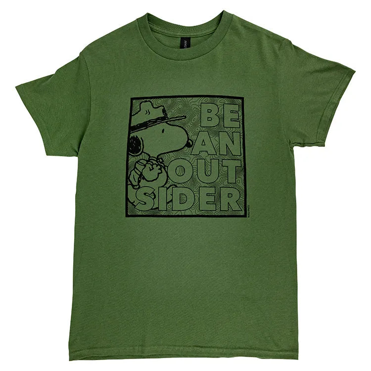 Celebrate your love for Snoopy and the great outdoors with this Peanuts t-shirt! Featuring the bold message to "Be an Outsider,” this 100% cotton tee is as comfortable as it is inspiring. Perfect for casual outings or connecting with fellow fans, it’s a must-have addition to the wardrobe of any outdoor enthusiast or fan of Snoopy and the rest of the Peanuts gang. Stay cool, comfortable, and stylish with this iconic design!