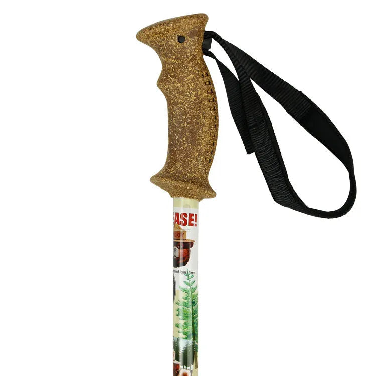 Introducing the ultimate hiking companion, our twist-lock expandable hiking poles, featuring a Smokey Bear design wrap! These lightweight and durable poles are adjustable in height, with a comfortable grip handle and twist-lock mechanism for easy use. With the added bonus of an eye-catching Smokey Bear design that includes his traditional message of wildfire prevention, this hiking helper will be the envy of the trail.