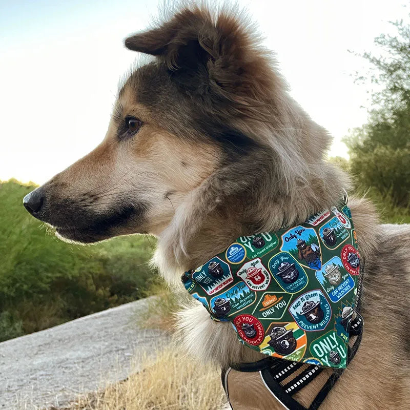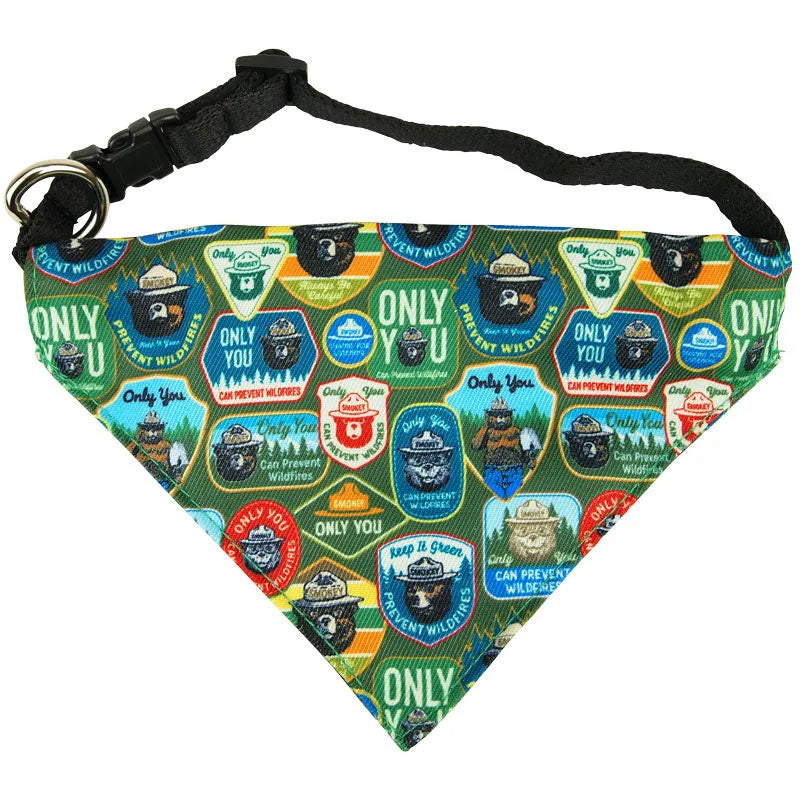 Only YOU can prevent wildfires! Since August 9, 1944, Smokey Bear has taught millions of Americans about their role in preventing wildfires. Celebrate his legacy by picking up this dog bandana featuring an assortment of badges created to honor Smokey’s message of fire prevention.