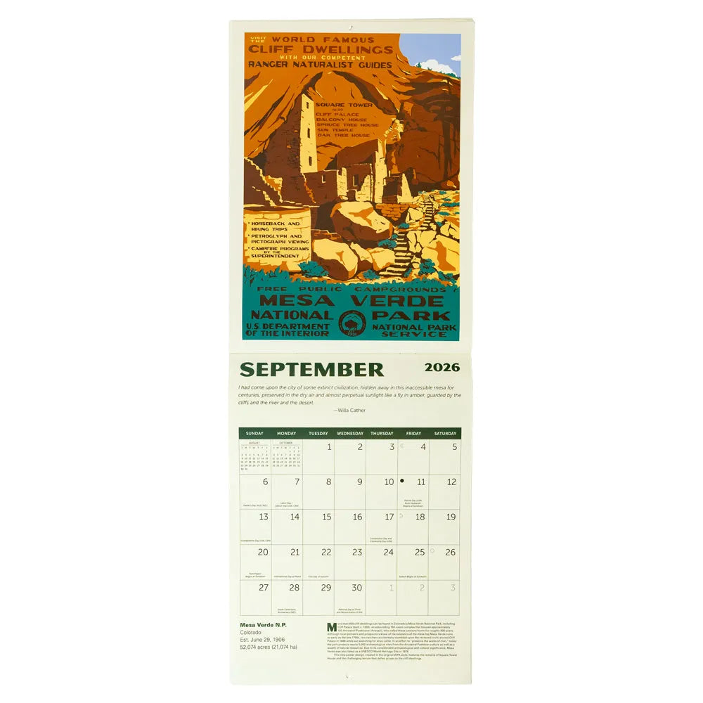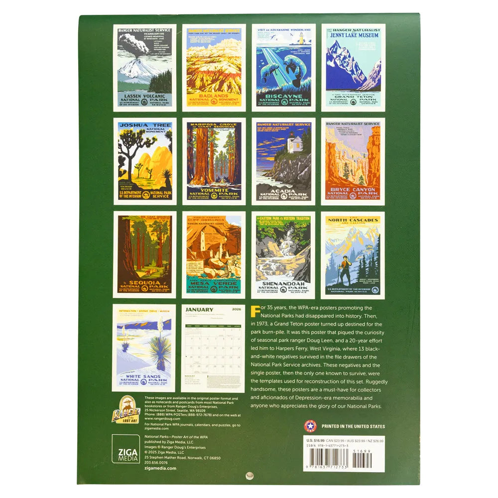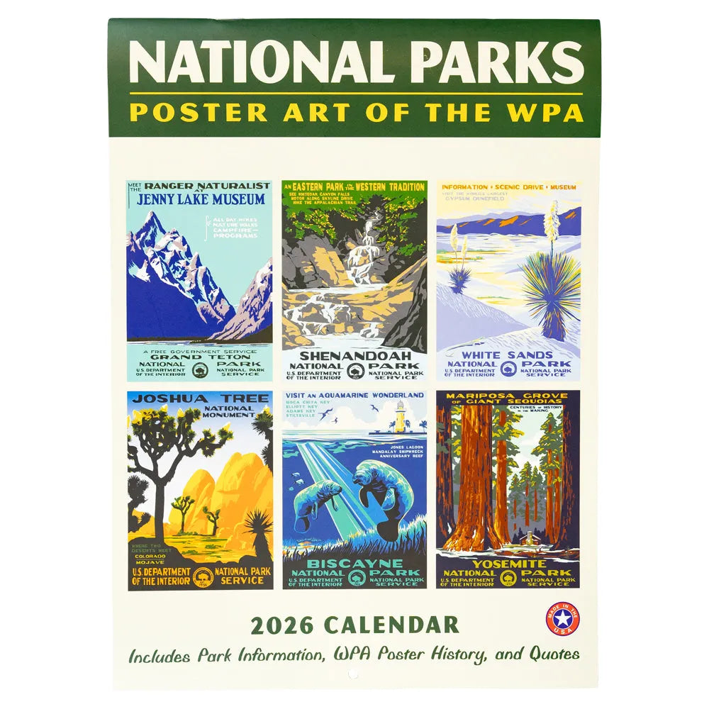 Plan your year with classic design and historic charm using the 2026 WPA National Parks Wall Calendar. Inspired by the original Works Progress Administration (WPA) posters from the New Deal era, this calendar combines practical function with iconic art.