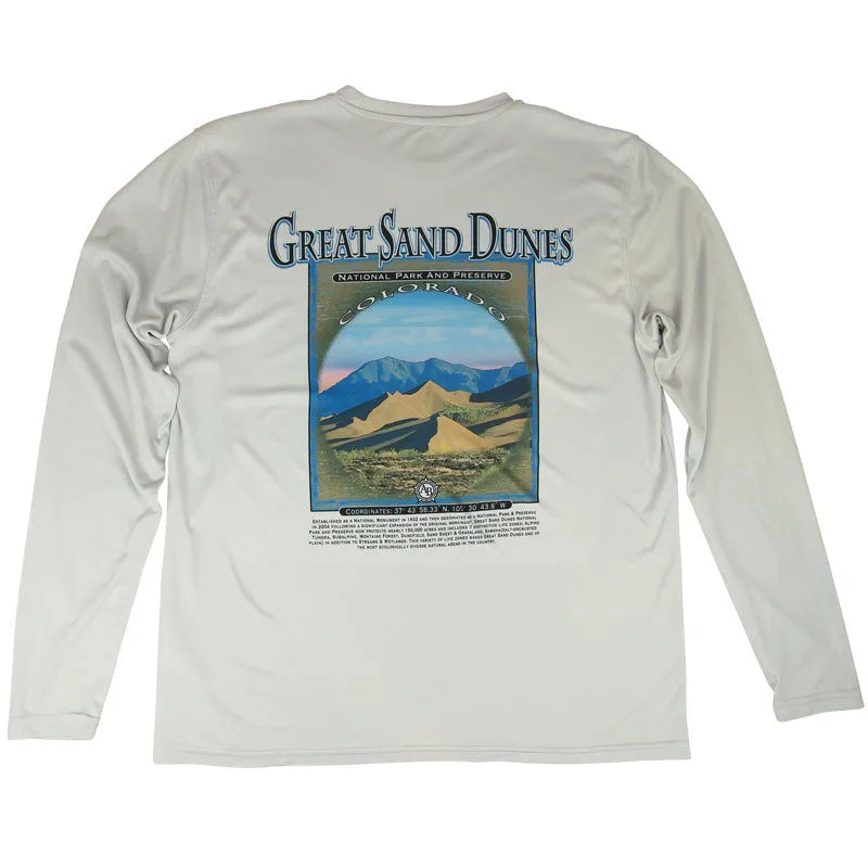 Unleash the adventurer in you with our performance long sleeve shirt celebrating Great Sand Dunes National Park and Preserve. Crafted from high-performance moisture-wicking 100% polyester, this shirt keeps you cool and dry, while the UPF 50 sun protection shields you from harmful rays.
