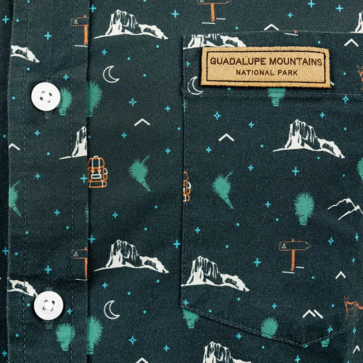 Embrace the rugged beauty of the Southwest with this button-up camp shirt representing Guadalupe Mountains National Park. Featuring a design inspired by the park's dramatic peaks and diverse landscapes, this shirt is perfect for both adventure and relaxation. Made from breathable, cotton-blend fabric, it offers comfort whether you're hiking the trails or enjoying a casual day out. Showcase your love for the Guadalupe Mountains in style with this versatile and durable camp shirt.