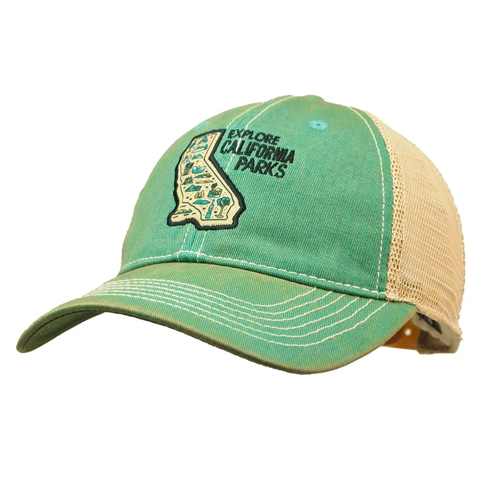 Celebrate the Golden State with the Explore California Parks Mesh-Back Cap. This two-tone hat features a soft green front with a bold embroidered patch in the shape of California. The patch features the state’s incredible variety of landscapes. Among the many parks featured on this hat are Yosemite National Park, Joshua Tree National Park, Channel Islands National Mark, Santa Monica Mountains National Recreation Area, and Whiskeytown National Recreation Area.