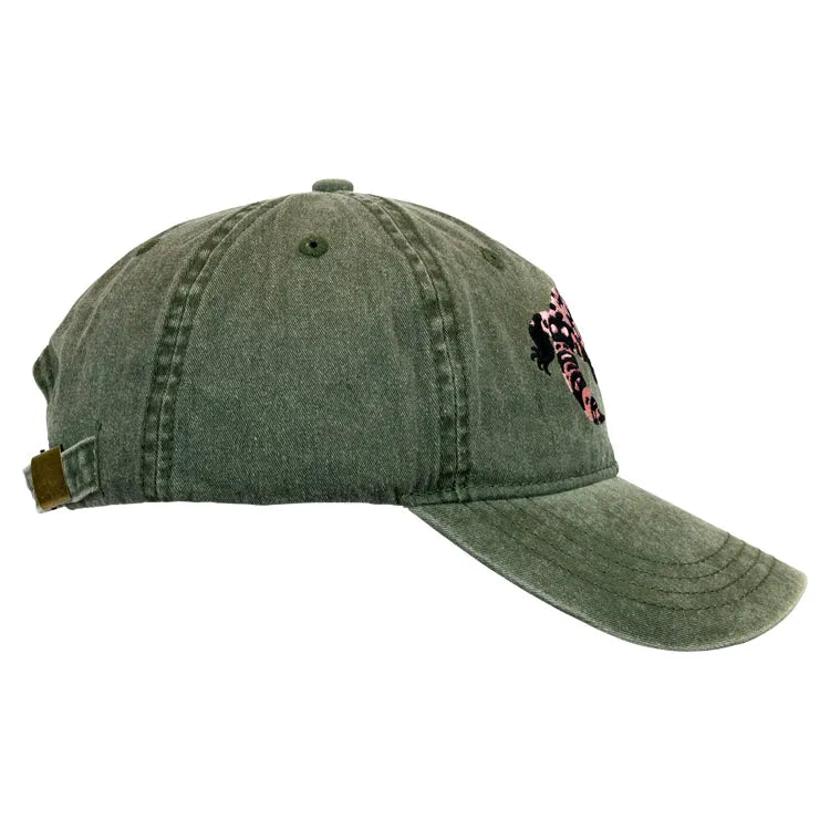 Show your support and appreciation for this iconic denizen of the desert Southwest by sporting this high-quality cotton cap. The Gila monster is North America's largest lizard, and one of only two known venomous lizards native to North America. Though it has a fearsome reputation, Gila Monsters are slow moving and relatively docile in the wild, so they don't present much threat to humans; they much prefer feeding on eggs. The Gila Monster on the cap face is fashioned from full-color embroidery.