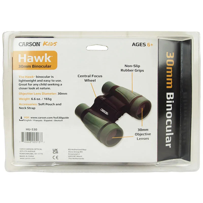 Introduce your young explorer to the wonders of nature with the Kids' Hawk 30mm Binocular! Specifically crafted for little hands and big adventures, these binoculars offer clear and colorful views of the world around them. Perfect for birdwatching, outdoor games, or backyard exploration, these binoculars ignite curiosity and encourage outdoor play. Lightweight and durable, they're designed to withstand the rigors of kid-powered exploration. Let your child's imagination soar with the Hawk, the perfect companion for their next outdoor adventure!