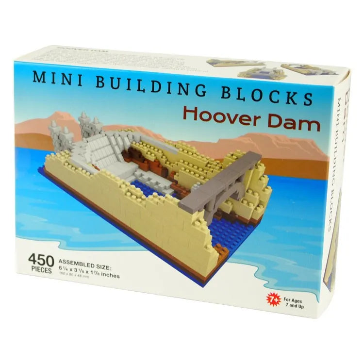 Build your own national park experience with our mini block sets! This set creates a miniature replica of the Hoover Dam. Once known as Boulder Dam, the Hoover Dam is a concrete arch-gravity dam in the Black Canyon of the Colorado River. The dam created the reservoir known as Lake Mead, which provides water for Arizona, California, and Nevada. The blocks come in a box featuring additional educational information about the dam.
