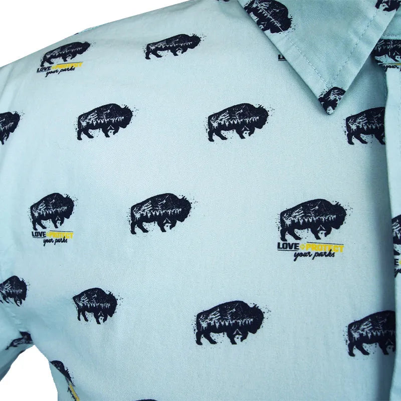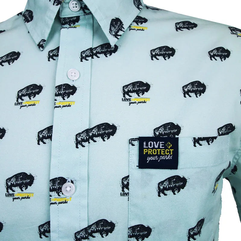 Introducing our Love + Protect Your Parks button-up camp shirt, a perfect blend of style and advocacy! This captivating shirt prominently displays the iconic Love + Protect Your Parks buffalo logo, designed by Western National Parks Association (WNPA). Crafted with premium materials, this comfortable and versatile shirt is ideal for outdoor enthusiasts and nature lovers alike. Whether you're exploring the wilderness or simply want to show your support for WNPA's mission, this shirt is a must-have addition to your wardrobe. Show your love for parks with every wear!