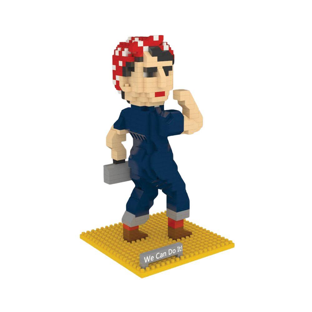 Build your own national park experience with our mini block sets! This set creates a miniature replica of Rosie the Riveter. Rosie the Riveter became an iconic symbol of female empowerment during World War II. The character, represented by the famous "We Can Do It!" poster, was used to encourage women to take on industrial jobs as men went off to fight in the war. The image and the slogan helped change perceptions about women’s roles in the workforce and remain a powerful symbol of women’s strength and capability. The blocks come in a box featuring additional educational information about Rosie the Riveter.
