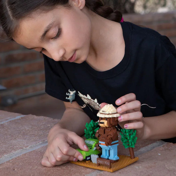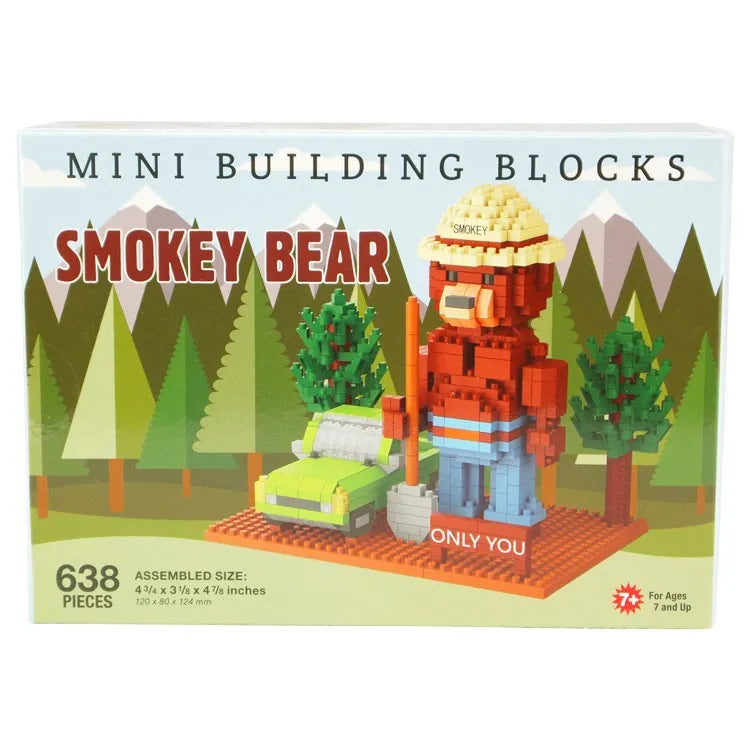 Only YOU can prevent wildfires! Since August 9, 1944, Smokey Bear has taught millions of Americans about their role in preventing wildfires. Celebrate his legacy by picking up this mini block set created to honor Smokey's message of fire prevention. This set creates a miniature replica of the National Forest Service's famous mascot, Smokey Bear, along with the trusty SUV he uses to traverse the forest. The blocks come in a box featuring educational information about the history of Smokey Bear.