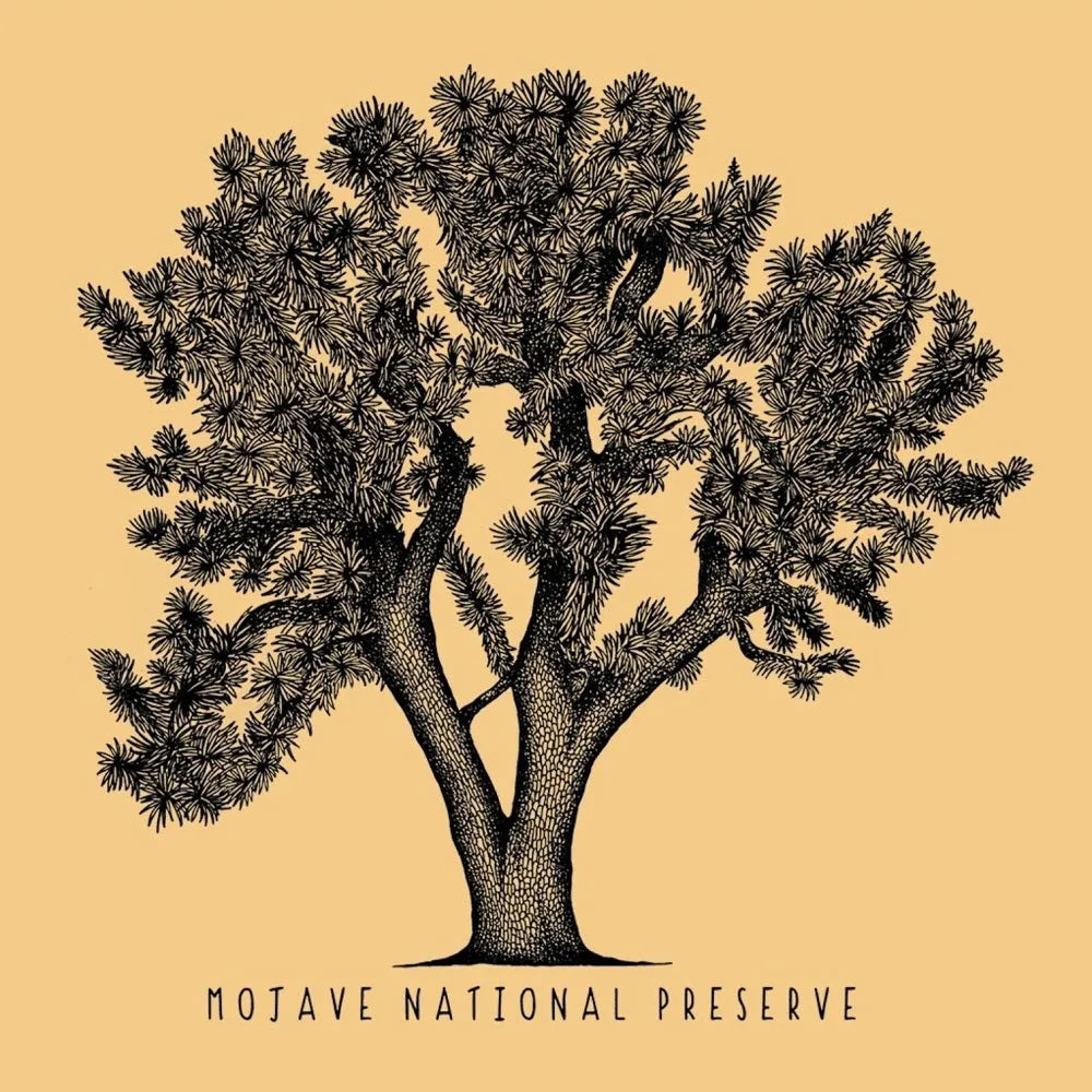 Honor the desert with the Mojave National Preserve t-shirt. This design features a detailed pencil-style sketch of a Joshua tree, one of the desert’s most iconic plants. The simple black illustration set against a desert yellow background reflects the stark yet beautiful character of the Mojave landscape. Designed by Wild Tribute, the shirt captures the likeness of this important species.