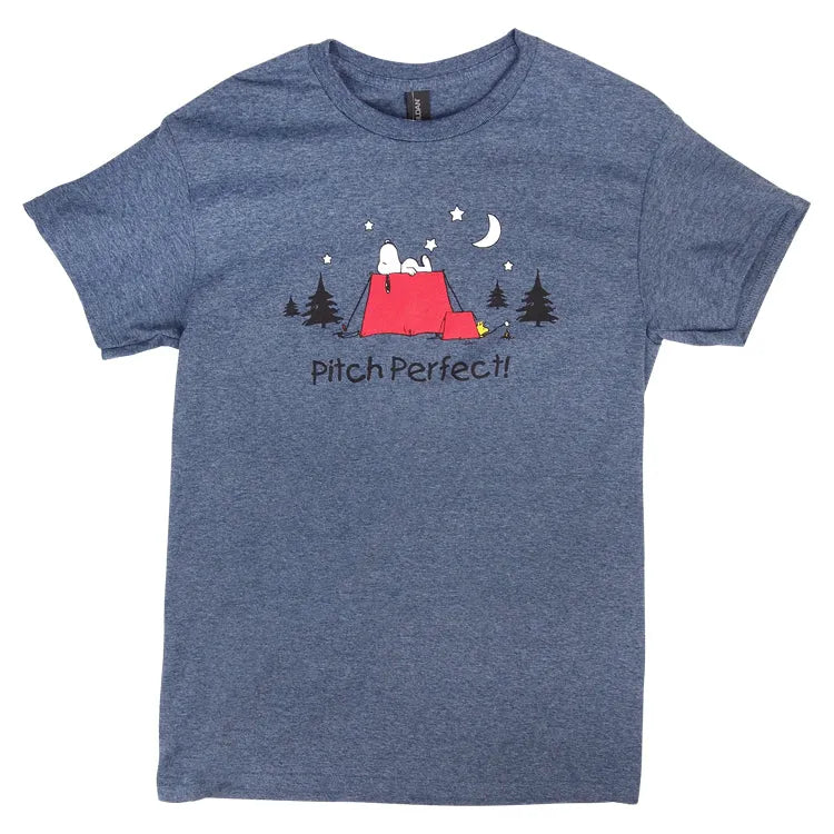 Celebrate the beloved Peanuts character and the outdoors with our Snoopy “Pitch Perfect” T-shirt. It features Snoopy lounging atop his tent under a starlit sky. Perfect for fans of the Peanuts gang, this soft and comfortable tee brings a bit of nighttime adventure to your wardrobe. Whether you’re exploring the outdoors or relaxing at home, this shirt is a delightful way to show off your love for Snoopy and the great outdoors.