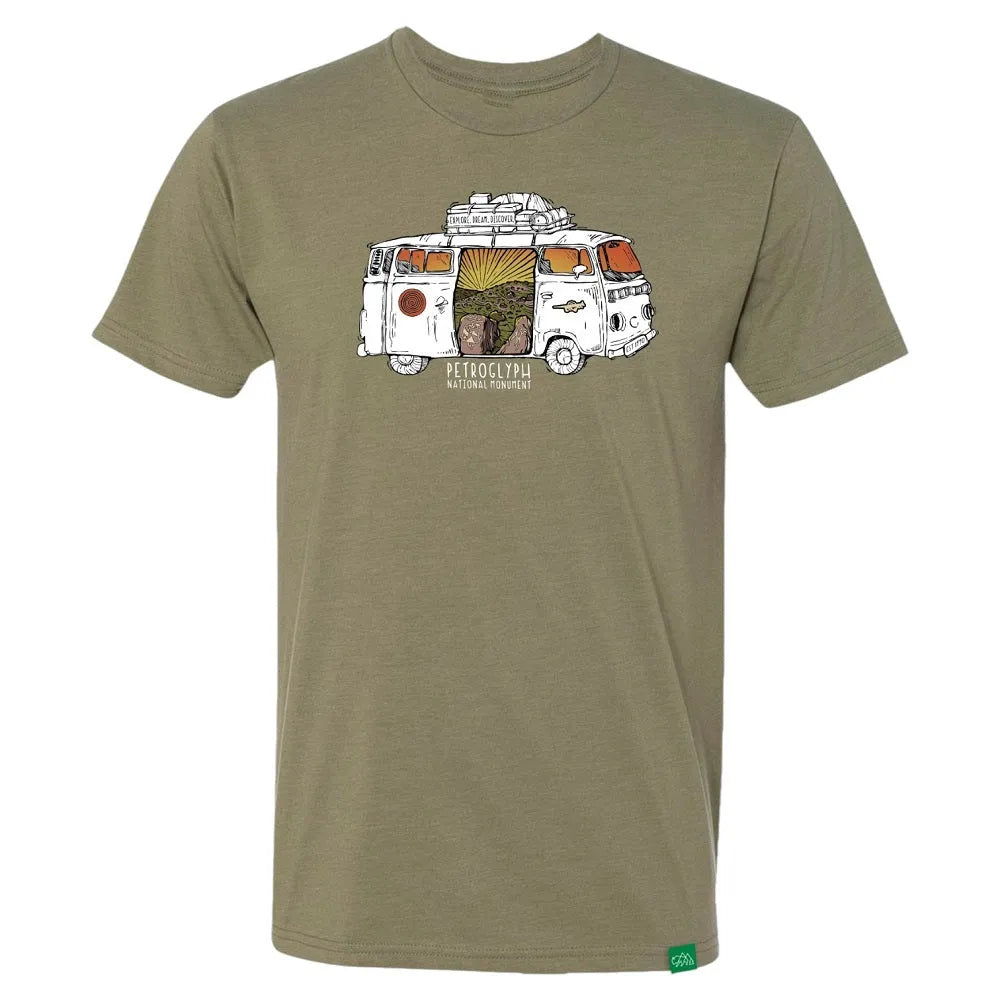Embark on an adventure with our Petroglyph National Monument Van Tour T-Shirt! Envision the van's doors swinging open to unveil a captivating scene - the park's landscape, housing one of the largest petroglyph sites in the United States. The van itself is adorned with specific petroglyphs found in the park, creating a unique and meaningful design. Crafted from a comfortable blend of 60% Combed Ringspun Cotton and 40% Polyester, this short-sleeved shirt keeps you cool and stylish. Featuring an image of the vintage RV at Petroglyph National Monument, it captures the essence of your journey through the cultural richness of the Southwest. Order now and embody the spirit of exploration!