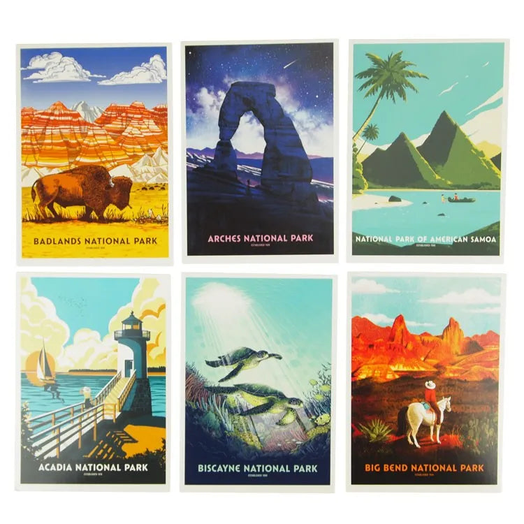 Postcards offer an affordable way to commemorate your travels to national parks and share those adventures with friends and family. You can send them, keep them for yourself, or even send them to yourself! In this set, America's most iconic vistas are immortalized in one hundred postcards representing 62 national parks, with 38 duplicates of the most-visited sites, celebrating America's natural wonders.