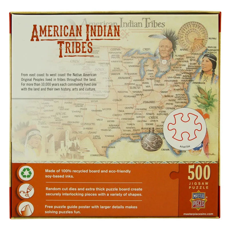 Discover history and culture piece by piece with the American Indian Tribes Puzzle. This 500-piece puzzle features an incredibly detailed map that highlights the homelands and settlements of Native nations across North America. More than just a pastime, it’s both an educational tool and a work of art that invites you to learn while you build.
