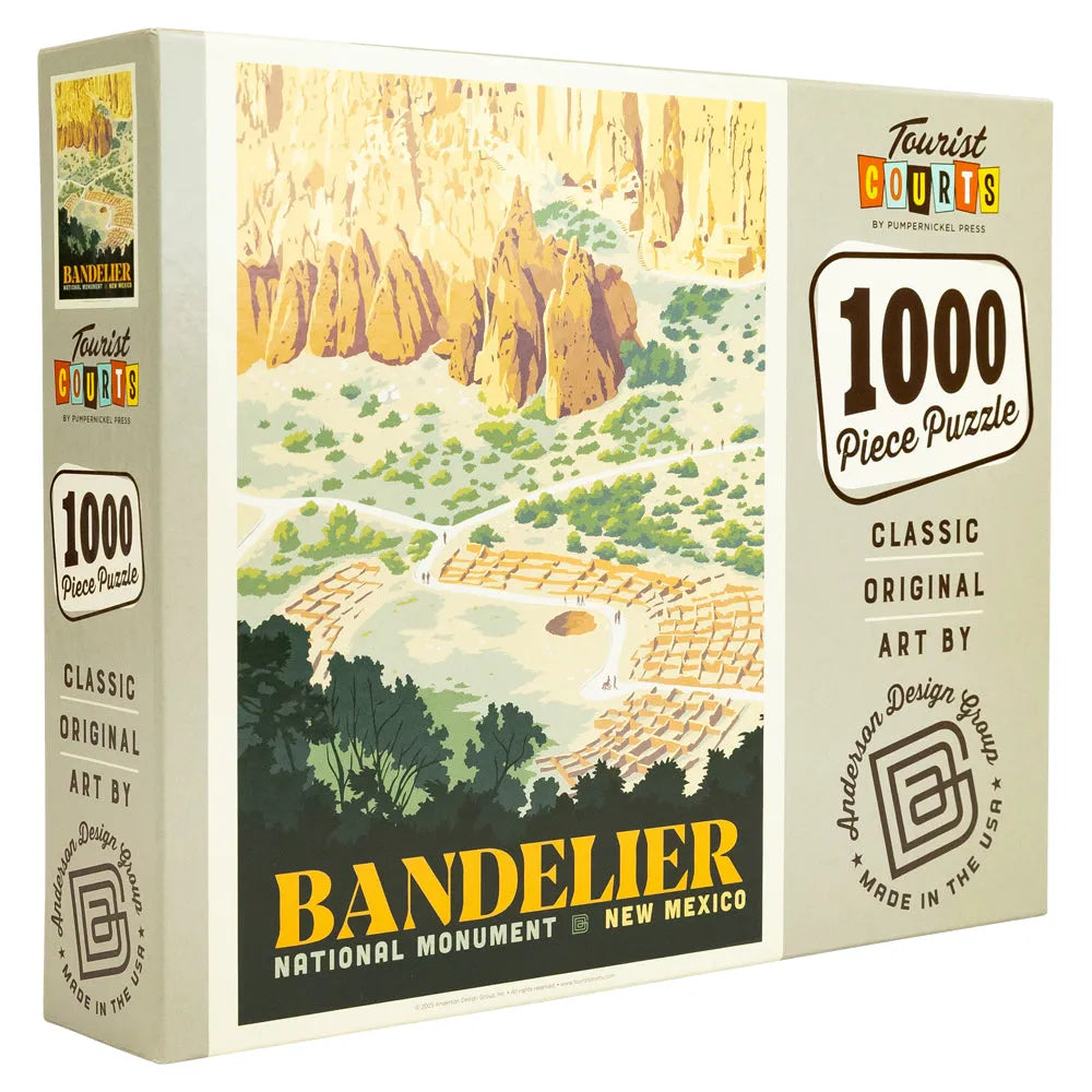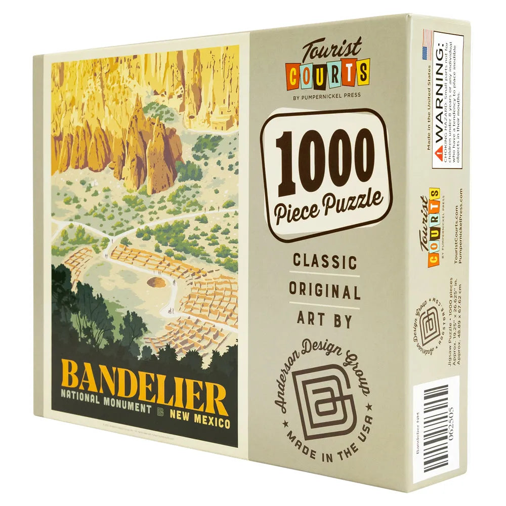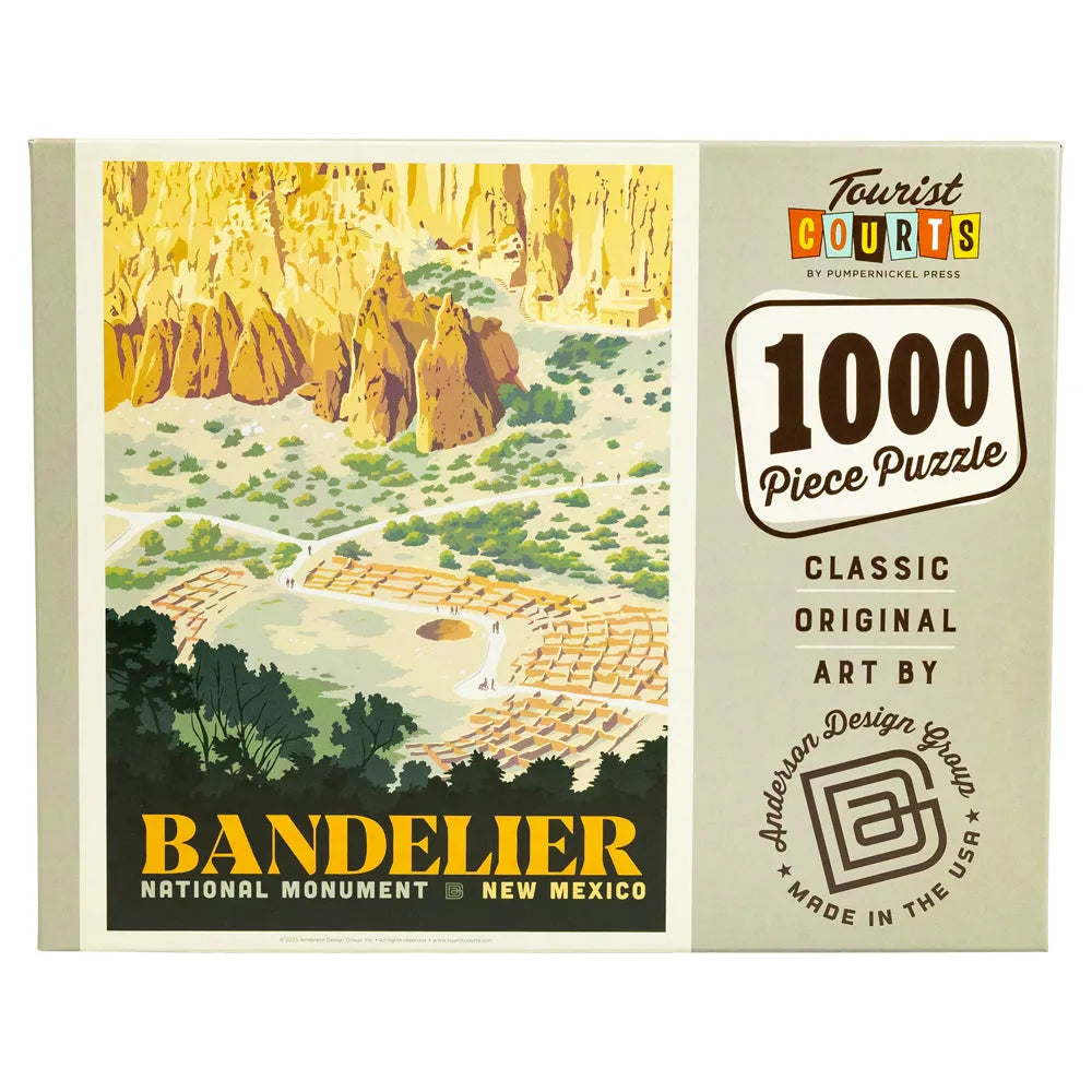 Puzzle box with Bandelier National Monument illustration and 'Tourist Courts' branding.