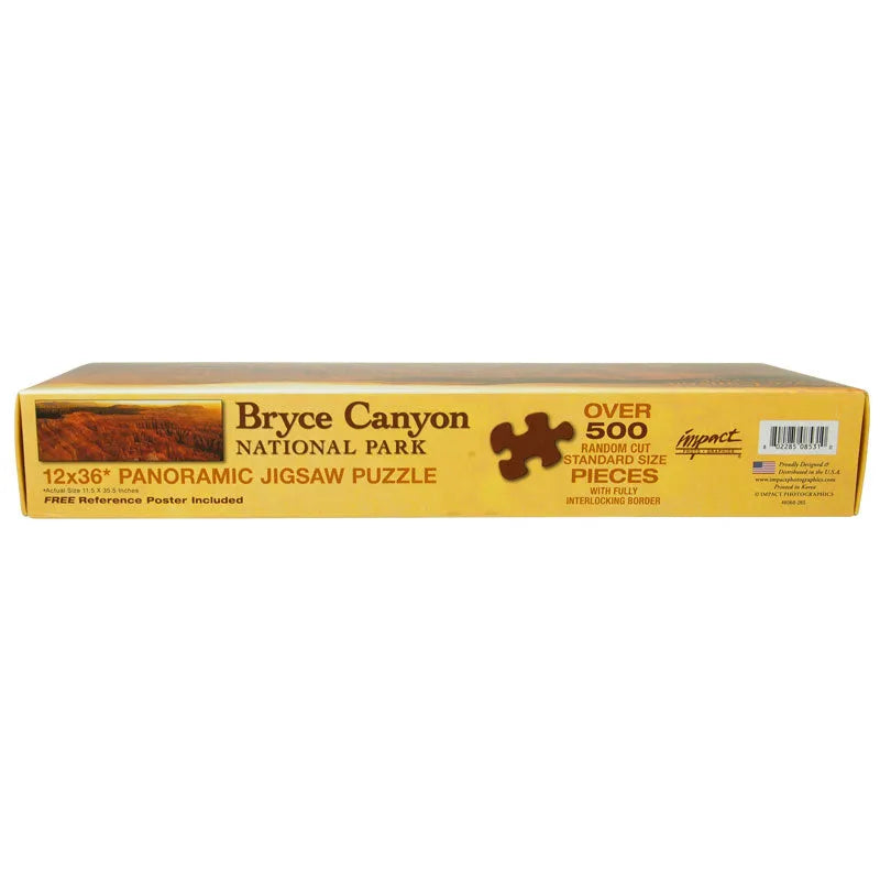 Immerse yourself in the splendor of Bryce Canyon National Park with this stunning panoramic jigsaw puzzle. Featuring a breathtaking photograph of the park's iconic hoodoos and vibrant landscapes, this puzzle captures the unique beauty of Bryce Canyon. Made from high-quality materials, it offers an engaging and rewarding experience for puzzle enthusiasts and nature lovers alike. Perfect for family fun or solo relaxation, bring the magic of Bryce Canyon into your home. Order your puzzle today!