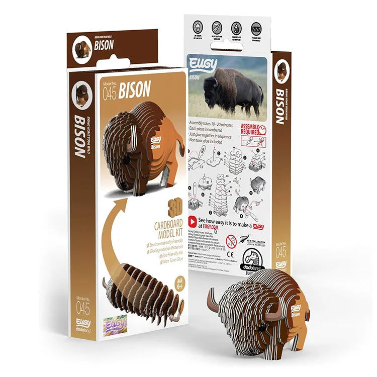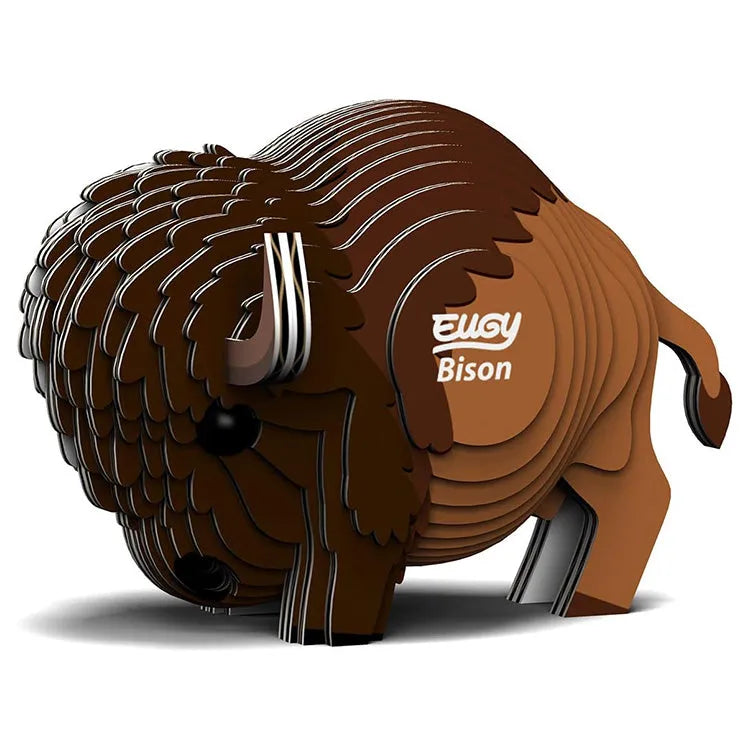 Bison, also called Buffalo, once numbered in the millions on the plains of North America. Though they were nearly hunted to extinction, they have bounced back to experience a remarkable recovery. This 3D Bison puzzle features the animal's distinctive shaggy head, curved horns, and mighty back hump. A perfect arts and crafts activity to help pass some time and teach following instructions. Puzzle also contains fun Bison facts to help kids learn while they build!