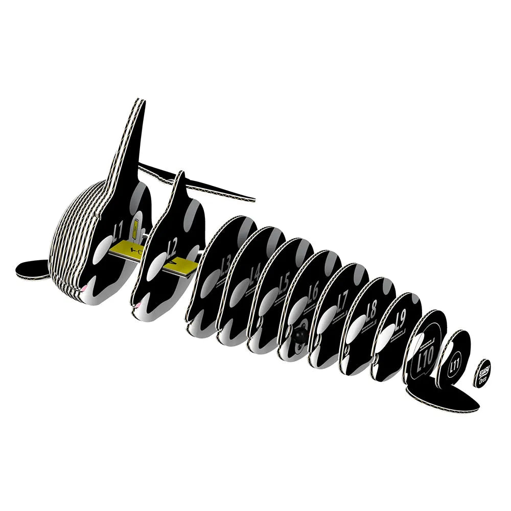 3D puzzle pieces of an Orca Whale arranged in a linear pattern on a white background.