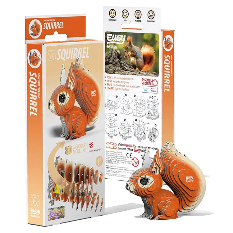 With its pointed ears, bushy tail, and quizzical expression, this 3D squirrel puzzle really captures the essence of these well-known mammals. Makes a great arts and craft activity to help pass some time and teach following instructions. Puzzle also contains fun Squirrel facts to help kids learn while they build!