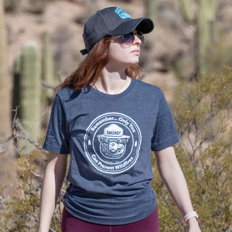 Only YOU can prevent wildfires! Since August 9, 1944, Smokey Bear has taught millions of Americans about their role in preventing wildfires. Celebrate his legacy by sporting the super-comfortable, super-soft t-shirt featuring Smokey's face along with his message of fire prevention.