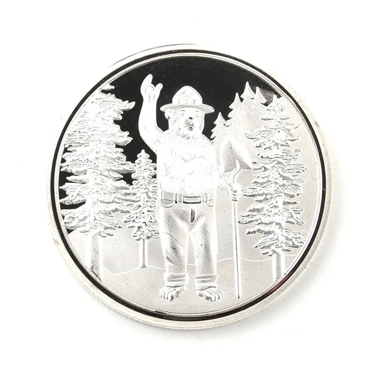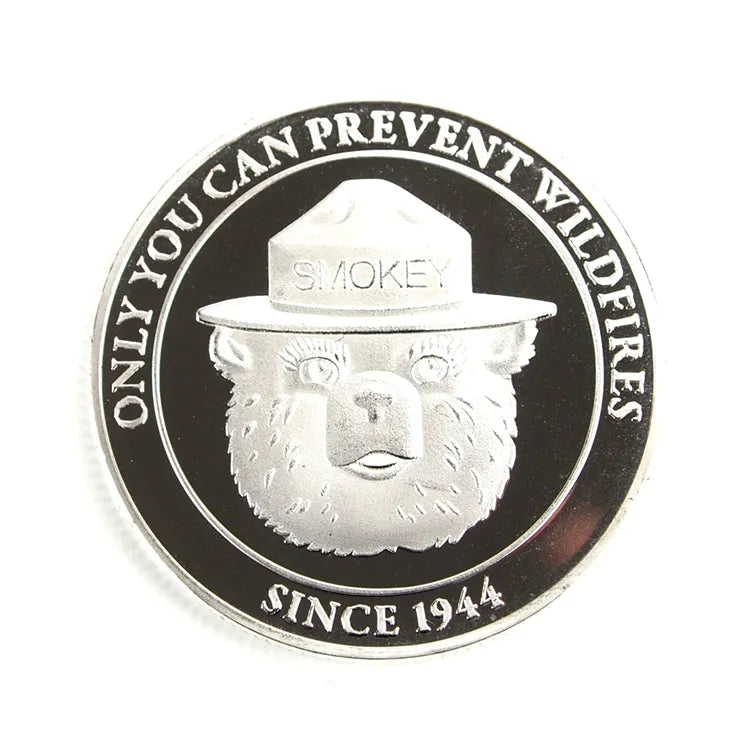 Only YOU can prevent wildfires! Since August 9, 1944, Smokey Bear has taught millions of Americans about their role in preventing wildfires. Celebrate his legacy by picking up this highly polished cast metal coin created to honor Smokey's message of fire prevention. The front features a classic image of Smokey's head along with his message. The reverse depicts Smokey, shovel in hand, in his natural wooded environment. This coin is packaged in a resealable plastic case so your collectible coin will stay in mint condition for years to come.