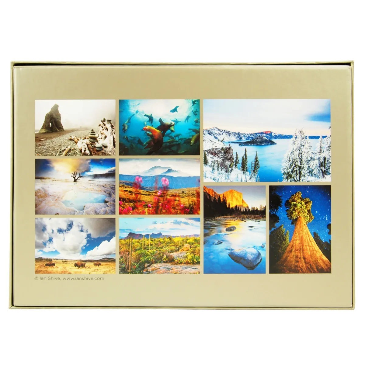 Share the beauty of America's national parks with this set of notecards from Ian Shive, award-winning conservation photographer, author, educator, film producer, and environmental advocate. These incredible landscapes have been captured by Ian for years. Each boxed set features twenty folded notecards, with two each of 10 designs. These cards are printed in full color, with blank interiors for letters. With the accompanying envelopes, you will have everything you need to share a little slice of America's precious landscapes and resources with friends and loved ones.