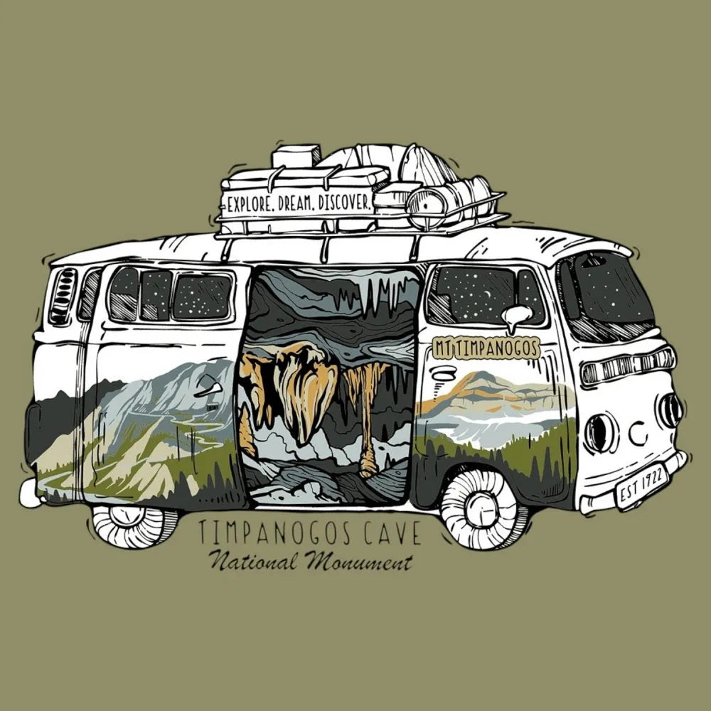 Made with a cotton-poly blend, this Timpanogos Cave National Monument t-shirt is soft and durable. Perfect for hiking, cave tours, or casual wear, the van design captures the essence of Timpanogos Cave in a fun, adventurous style.
