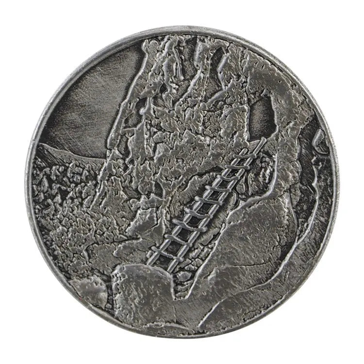 National park tokens are perfect for commemorating your journeys to national parks far and wide. Each token is crafted from solid metal with park-specific engravings on both sides. The front of this token features an image of the "Talking Turkey" petroglyph, the most iconic of hundreds of petroglyphs found at ­­­­­­­­­­­­­Bandelier National Monument, and the back features an image of the "Alcove House," and the ladder used to reach the entrance.