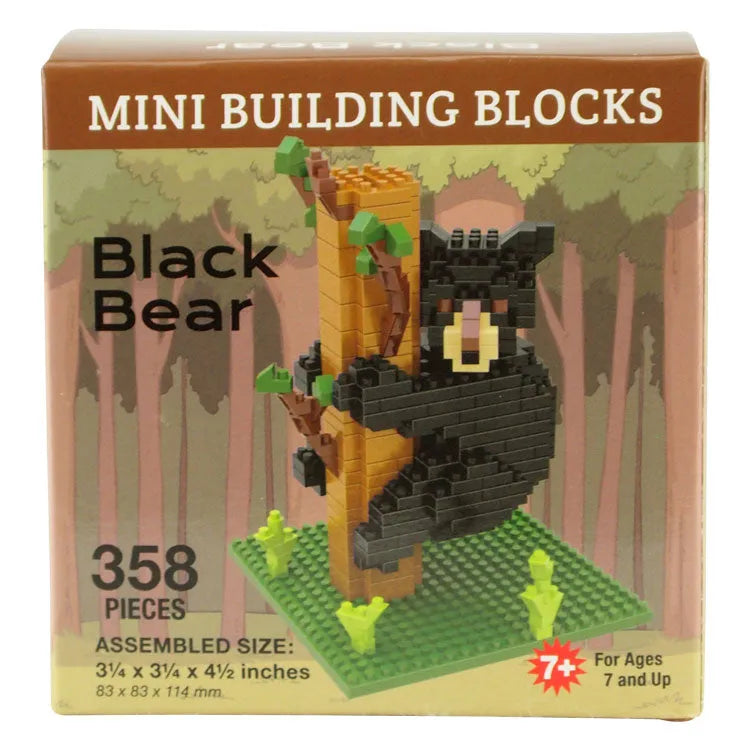 Build your own national park experience with our mini block sets! This set creates a miniature replica of a black bear holding onto a tree trunk. Black bears often climb trees to find food, escape predators, and hibernate. While their hearing and eyesight are similar to humans, they have an incredible sense of smell—even better than a dog’s! The blocks come in a box featuring educational information about the black bear.