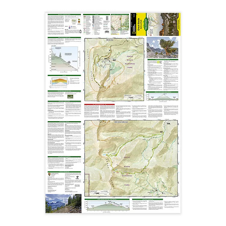 National Geographic's Trails Illustrated map of this unique park offers outdoors enthusiasts a valuable tool for exploring the park's natural beauty and solitude. Expertly researched and created in partnership with Great Basin National Park, this map features trail networks in the park along with key points of interest including: Wheeler Peak, Lehman Caves, bristlecone pine groves, and the Snake Range. The map also includes two detailed inset maps of the Wheeler Peak and Baker Lake areas. The map base shows contour lines and elevations for summits, passes and many lakes. A variety of recreation features are noted as well, including campgrounds, trailheads, picnic areas, and scenic viewpoints.