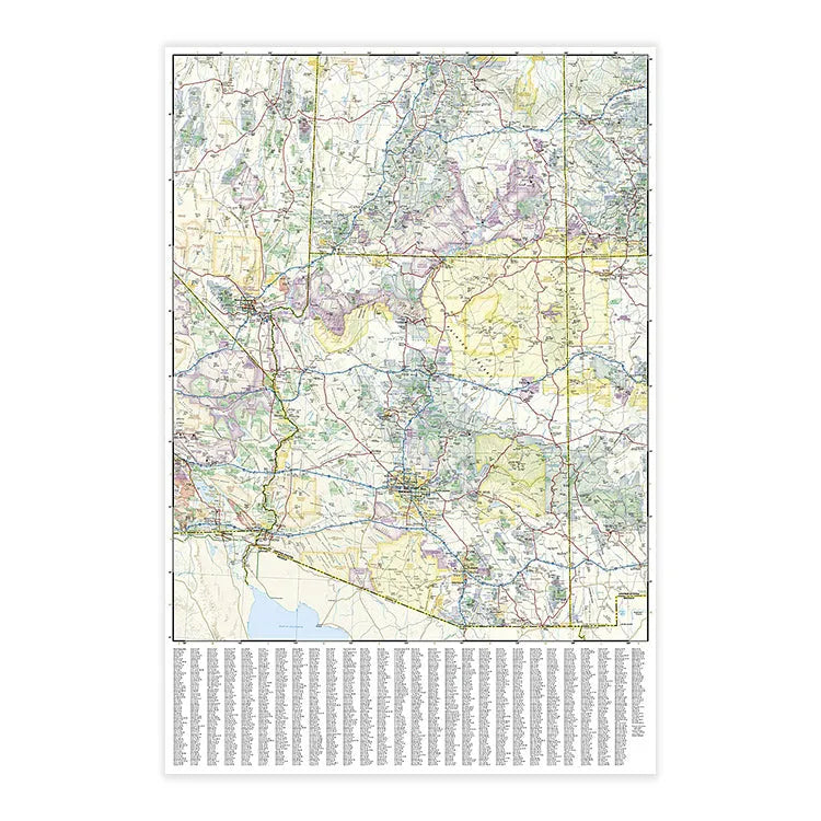 National Geographic’s Adventure Map of the United States Southwest will guide you through one of the most iconic and awe-inspiring regions on Earth. The states of Arizona and New Mexico contain the Grand Canyon, Petrified Forest, and Saguaro National Parks; Monument Valley, the Sonoran Desert, and dozens of celebrated national monuments, forests, and wilderness areas. The map includes the cities of Phoenix, Tucson, Sedona, Flagstaff, Santa Fe, and Albuquerque, as well as the Navajo, Apache, Hopi, and many other Native Nations. It covers the entire Four Corners Region including the southern halves of Utah and Colorado. There is simply no better map for exploring the Southwestern United States.