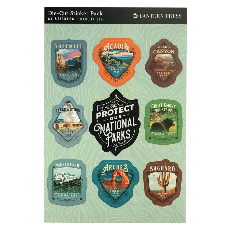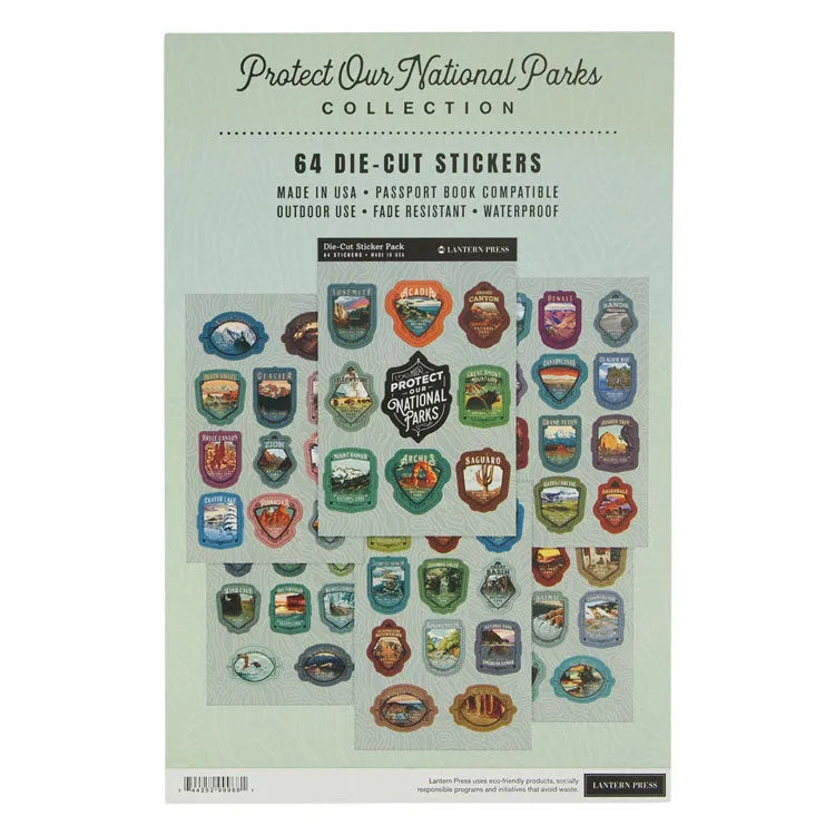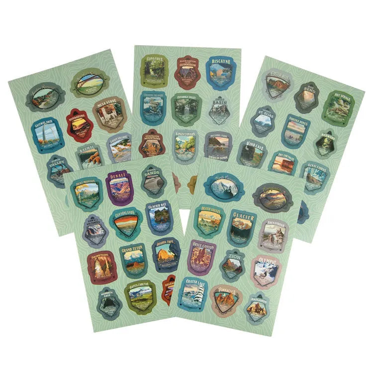 Show the world your support for national parks by putting these vinyl stickers on your car, water bottle, cooler, camper, locker, laptop, or wherever! This set of 64 stickers feature images of national parks, each illustrated with its own vintage-style artwork. They are passport-book-compatible, fade-resistant, and waterproof as well.