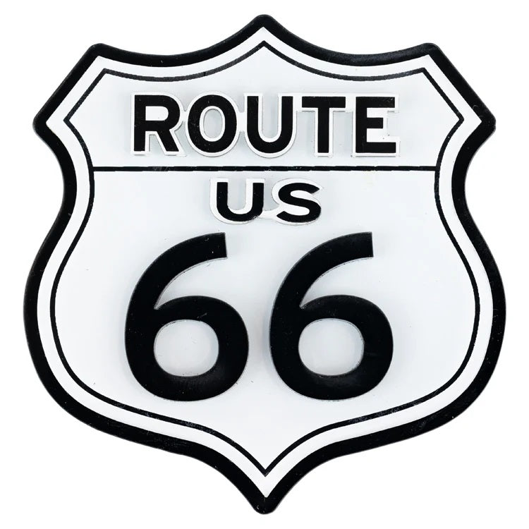The bold black-and-white design stands out and appeals to road trip fans and vintage lovers alike. The Route 66 Road Sign pin includes a rubber stud backing for easy, secure attachment. Add it to your jacket, tote, shirt, or cap for a stylish nod to America’s most iconic highway.