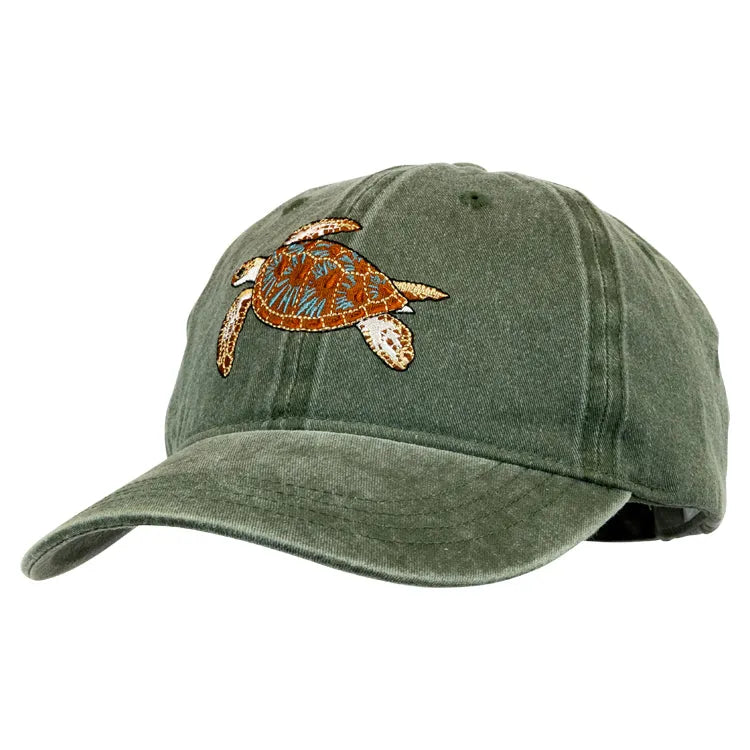 Show your appreciation for this endangered species by sporting this high-quality cotton cap featuring a sea turtle in full-color embroidery.
